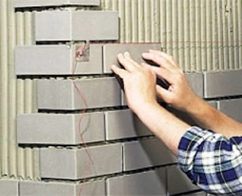 - «Гибкий кирпич» легко огибает выступы, сформированные под любым углом, а также внутренние углы или скругленные стены, если они имеются на отделываемой поверхности.