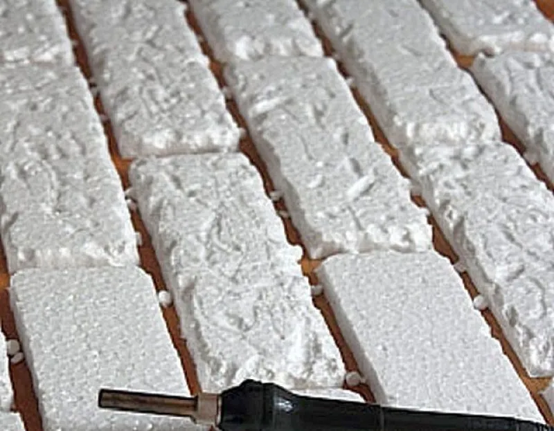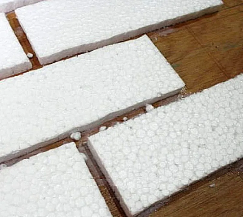 - Самостоятельное изготовление плитки из пенополистирола толщиной в 10÷12 мм. Для этой цели рекомендовано использовать экструдированный материал с более высокими эксплуатационными показателями, чем обычный белый пенопласт.
