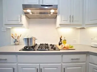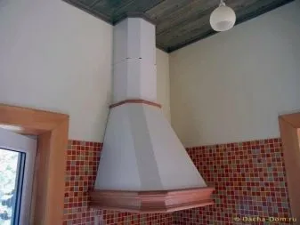а во втором (настенная кухонная вытяжка), в кожухе воздуховода над вытяжкой.