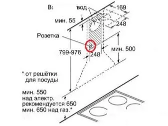 - Рекомендовано устанавливать розетку не вплотную к кожуху вытяжной системы, а делать отступ приблизительно на 30 сантиметров. В данном случае до точки электропитания не будет доставать жар, долетать брызги жира и воды от варочной панели (плиты).