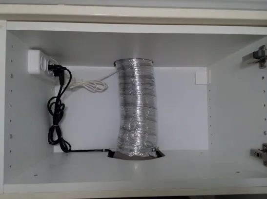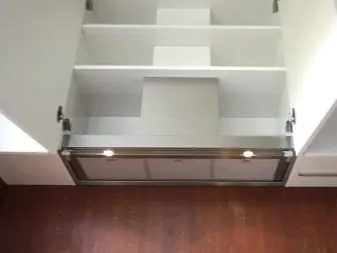 - для встраиваемых модификаций идеальным местоположением будет внутренний короб навесного шкафа, в который встроена вытяжка;