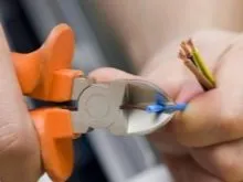 - Зачистить провод. Перед подсоединением нужно подготовить выглядывающий из стакана провод. Если проведенный электрокабель либо провод имеет двойную изоляцию, то с него удаляют 15-20 сантиметров наружной изоляции. После чего он станет более податливым для подсоединения. Если проведена спаренная проводка с одинарной изоляцией, то необходимо на 5-10 сантиметров разделить между собой жилы.