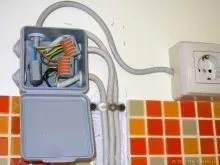 - Для устройства скрутки проводов сетевого шнура вытяжки с проводами электросети в помещении с завершенным ремонтом потребуется вскрывать заштукатуренные штробы или снимать кафель.