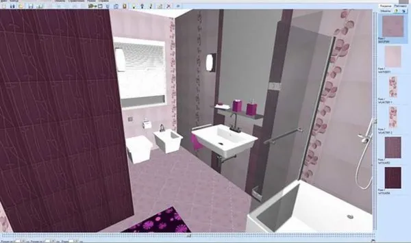 Хорошее профессиональное программное обеспечение для создания дизайна ванной комнаты. Естественно, оно не бесплатное, но есть демо-версия с полным функционалом, которая доступна всем без оплаты. Срок действия бесплатной лицензии — 1 месяц. Если вы решили сделать раскладку плитки для себя, это неплохой вариант, но уложиться надо в указанный срок.