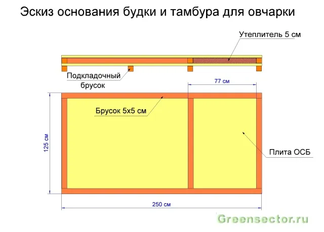Удобной для большой собаки (например, восточно-европейской овчарки) является будка с тамбуром и односкатной крышей. Процесс ее создания следующий: