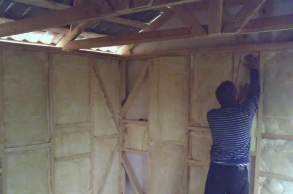 - затем наполнить образовавшиеся ячейки специальным утеплителем;