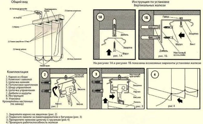 Монтаж вертикальных жалюзи осуществляется по такой схеме:
