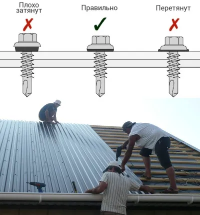 - шурупы для кровли с резиновыми вставками и шестигранными головками;