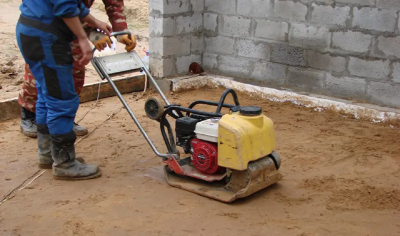 - Следует отметить, что максимально допустимый слой песка, который нужно утрамбовать – это 200 мм. Если запланирован больший слой, то работа по трамбовке разбивается на этапы, но за раз не более 200 мм. В процессе трамбовки необходимо песок периодически поливать водой из шланга.