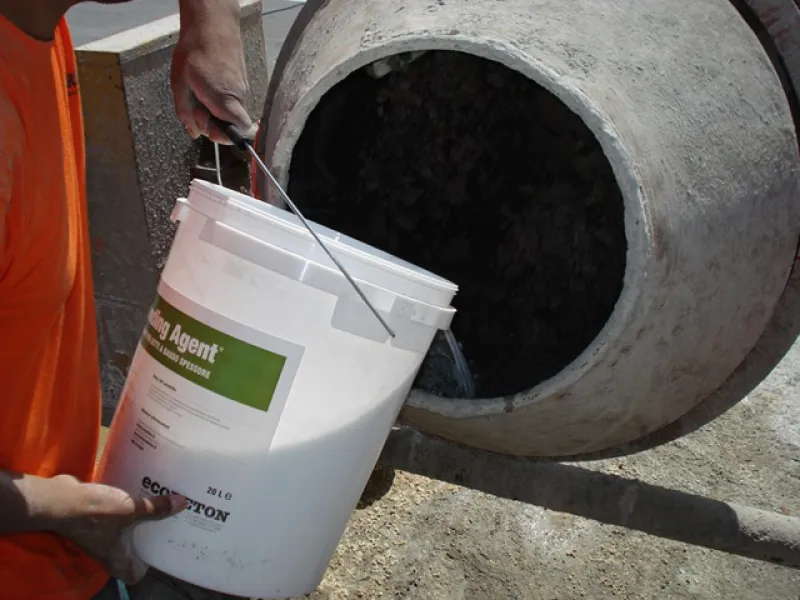 - Для того чтобы цемент превращался в камень ему необходимо определенное количество воды примерно равное четверти его массы. На 100 кг цемента надо примерно 25 литров воды. Но такое соотношение не позволит получить пластичный и текучий раствор цемента с наполнителями, поэтому в смеси вводят дополнительное количество воды, которое позволяет удобно укладывать раствор. Пластификаторы позволяют до минимума свести водоцементное соотношение, которое выгодно сказывается и на скорости застывания и на итоговой прочности конструкции или покрытия.