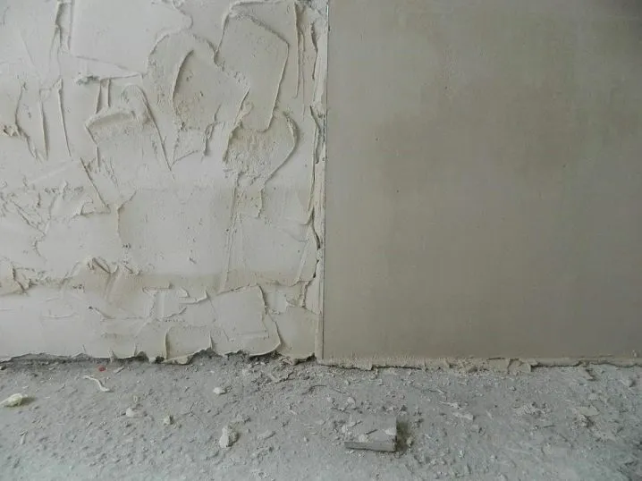 Большие видимые неровности лучше заделать сразу, замазать ямки шпаклёвкой. Выпуклости попробовать сбить. Если стена отделана слишком гладким составом, есть риск плохого сцепления со штукатуркой. В этом случае нужно сделать насечки с помощью УШМ (болгарки) или перфоратора, порядка 100 на 1 м².