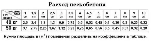 - Расчет расхода Пескобетона М-300 ЦСМ (40 кг)