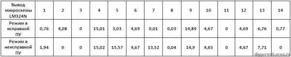 Таблица 2 Режим работы микросхемы UC3845B платы управления инвертора Ресанта серии SH. Даташит на микросхему UC3845B. Судя по измерениям питание на 7 ногу ШИМ не подается. Теперь измерим режим работы микросхемы LM324N.