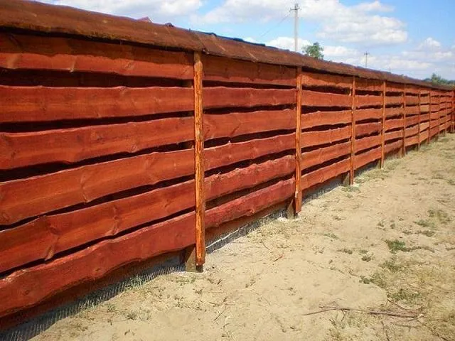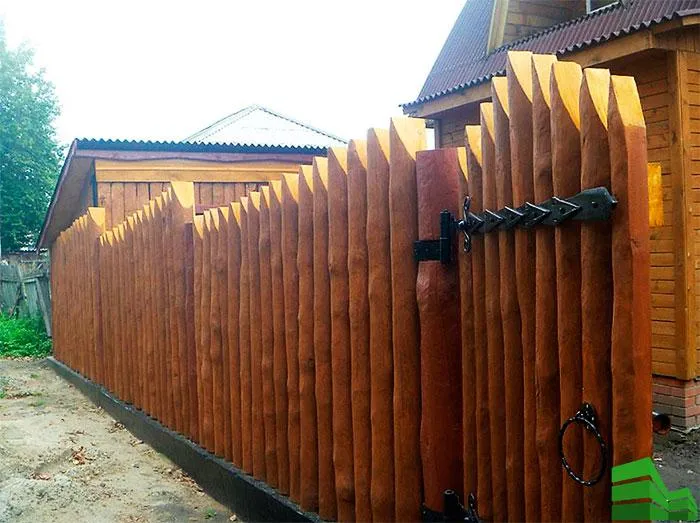 Такое ограждение ставили еще во времена Древней Руси. Одна сторона бревен заостренная, поэтому внешне они похожи на колышки. Их вкапывают в землю так, чтобы они стояли плотно друг к другу.