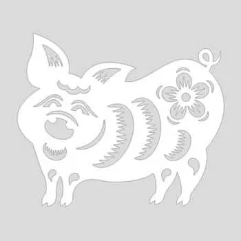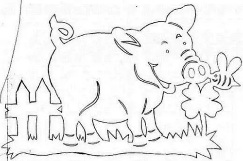 В галерее ниже представлены трафареты на окна в виде свиней и поросят, выбирайте один из них и начинайте украшать квартиру к Новому году 2019.