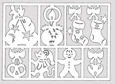Распечатайте трафарет для вырезания на листе формата А4, а затем начинайте резать узор по намеченным линиям. Если рисунок симметричный, согните лист бумаги пополам, так вы закончите работу в два раза быстрее. Дома нет принтера? Не проблема – переведите рисунок на бумагу прямо через экран компьютера.