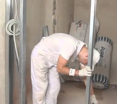 - Верх и низ вертикальных стоек надежно крепится к горизонтальным направляющим каркаса. Иногда делают дополнительное крепление к полу и потолку.