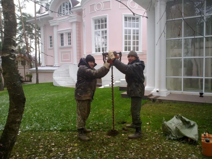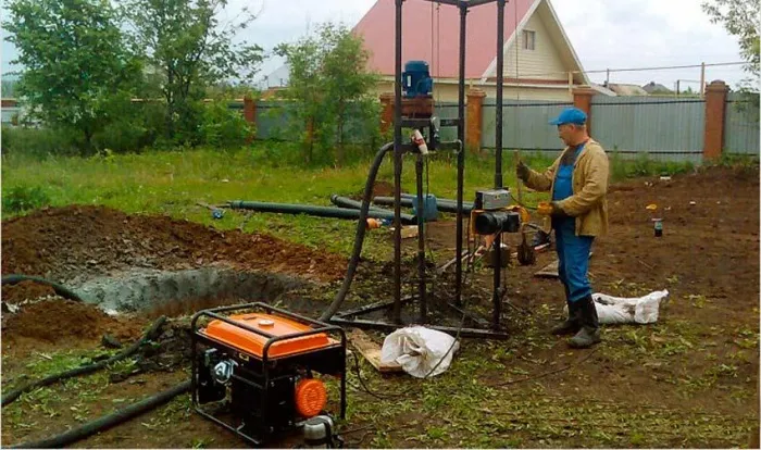 - Бурение скважины выполняется довольно быстро. При работе втроем или вчетвером можно сделать все за пару дней.