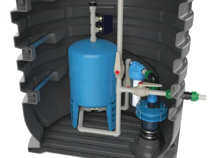 - Гидроаккумулятор предназначается, чтобы компенсировать гидроудар. За счет его использования насос эксплуатируется менее интенсивно. Его нередко называют мембранным баком. Емкость гидроаккумулятора выбирают исходя из мощности установленной конструкции. Устанавливают гидроаккумулятор в кессоне.