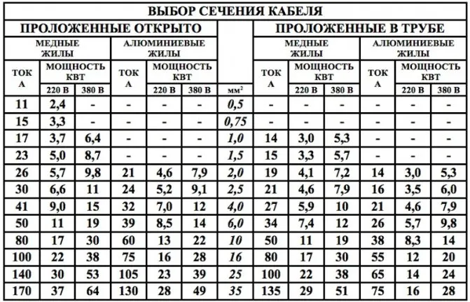 - Если прокладывают медный провод, то его сечение может быть 16 мм².
